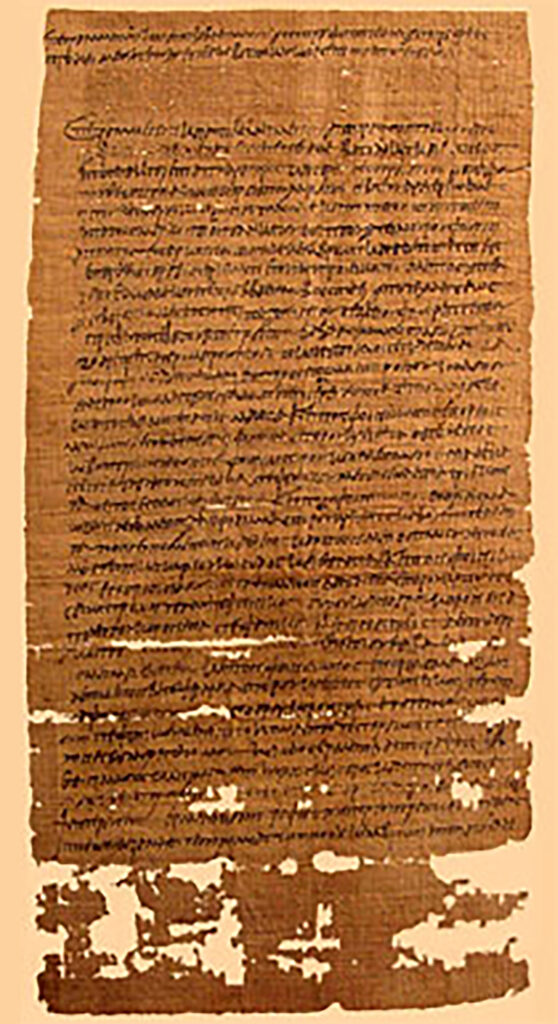 Figure 42. Land deed containing the name of Alma ben Judah. Babatha Scroll, GetArchive (website), jenikirbyhistory.getarchive.net/amp/media/babathascroll-5d18ca.