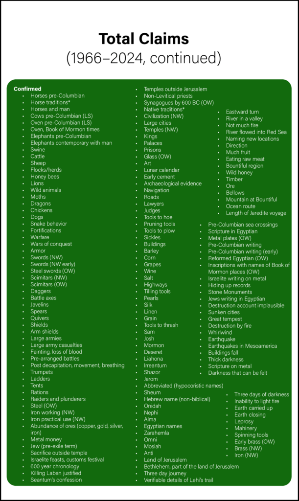 The evidence presented in this book is consistent with his conclusion that while many questions remain “today, current science is more supportive because many claims made in the book have been substantiated,” and “as seen by science, the Book of Mormon is stronger today than it was in 1830, 1844, 1950, or even 2000, so I expect it will continue to become stronger in the future.”5