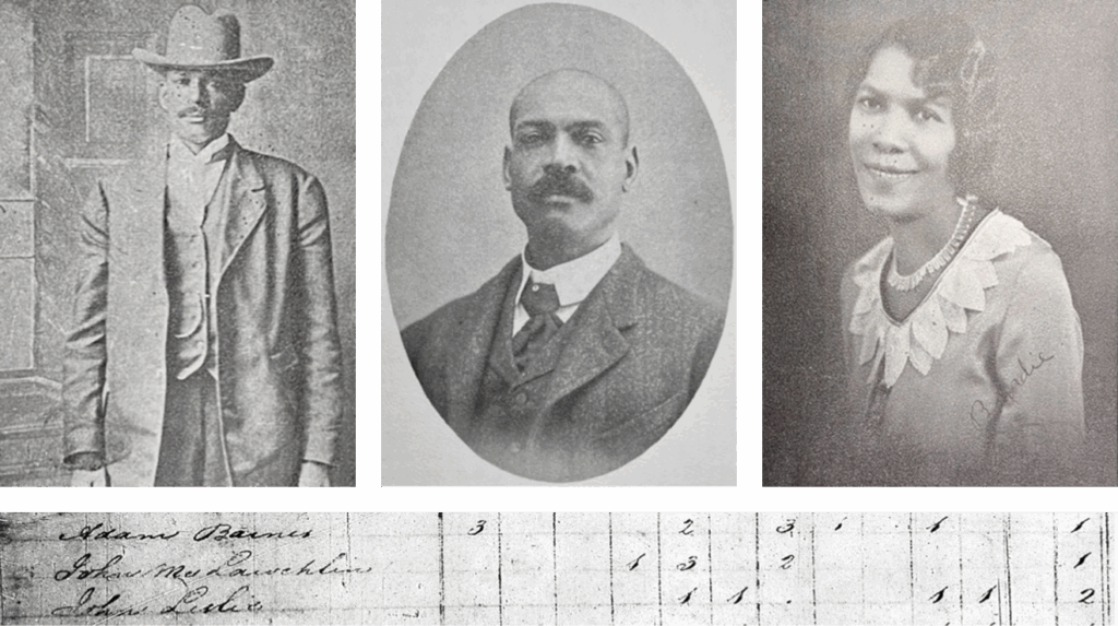 Figure 1. Upper: Paul and Levi (Howell siblings) and Byrdie (Paul’s daughter).3 Lower: Record of John McLawchlin (McLaughlin) in 1820 US census for Ouachita, Louisiana.4 McLaughlin was the owner of a Louisiana plantation where early members of the Howell family may have been enslaved.