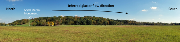The Palmyra hill is a large glacial drumlin, formed during the last ice age. It belongs to a large region of drumlins that lie between Lake Ontario on the north and New York’s Finger Lakes to the south.3 Understanding how the drumlins formed is important to understanding the findings that follow; it also offers insights into why this particular location would become the place for Moroni to secure his precious record.