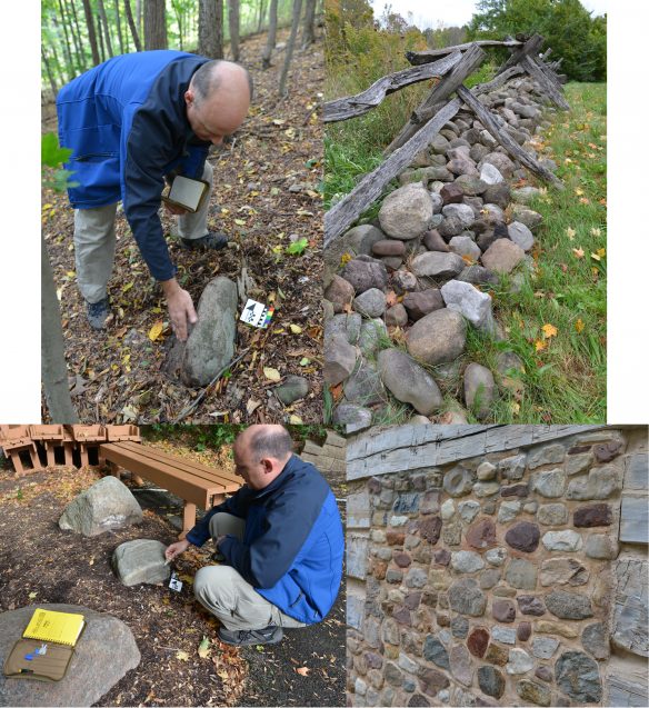 Image 7. Rocks found in the vicinity of the Palmyra hill fitting the description of those used to make Moroni’s stone box. Images A and B consist of rounded, but delaminated, sandstone. C and D are rounded cobbles of granite. B. Jordan photography.