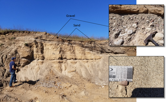 Image 10. The drumlin geology of the Palmyra area is revealed in the layers of sand, gravel, and limestone inclusions at this quarry just southwest of the hill. Within the gravel was limestone of a grade sufficient to produce lime. B. Jordan photography.