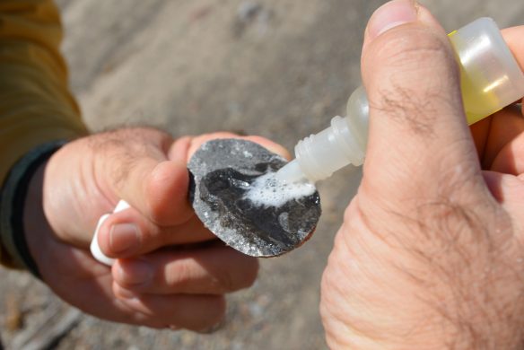 Image 11. Testing limestone with diluted hydrochloric acid. W. Aston photography.