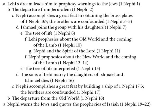 I do have a question, though: the chiastic structure of 1st Nephi. The article sort of glosses over the fact there are three or four different proposed structures for 1st Nephi. Does this mean that evidences for them are not very strong?
