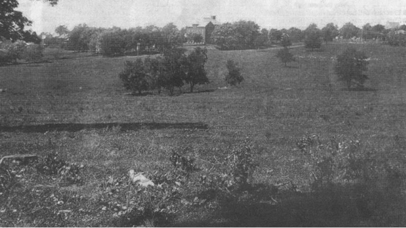 [Page 153]On August 3rd, those privileged to be part of the dedicatory ceremony proceeded to the squatter’s claim of Jones H. Flournoy. The Smith party worked their way through the brush and trees to the highest spot on the property. Orson Pratt recalled: “It was then a wilderness, with large trees on the temple block.”51 His brother Parley P. Pratt remembered that the location was “a beautiful rise of ground about a half a mile west of Independence … it was a noble forest.”52 And William L. McLellin recollected what he had been told: “Joseph cut his way in through this growth of trees, brush and saplings, to reach the site of the dedication for the proposed Millennial Temple.”53 This location was approximately two blocks west of where Flournoy’s home was located and about one-half block southwest of his unoccupied trading post on the Santa Fe Trail.54
