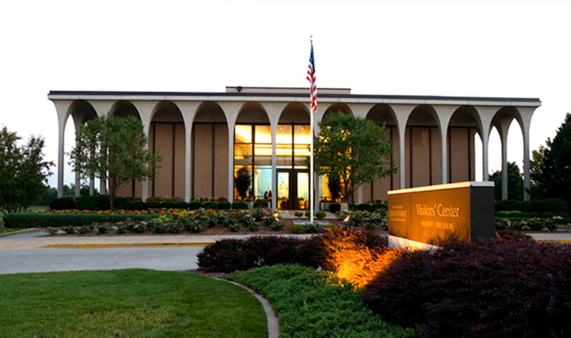 The Visitors’ Center stands on the northwest corner of the twenty-six acres at the intersection of Walnut and River streets. It is located south of the Community of Christ temple, and southeast of the chapel and headquarters’ offices of the Church of Christ. The edifice was dedicated on May 31, 1971, by President Joseph Fielding Smith.193